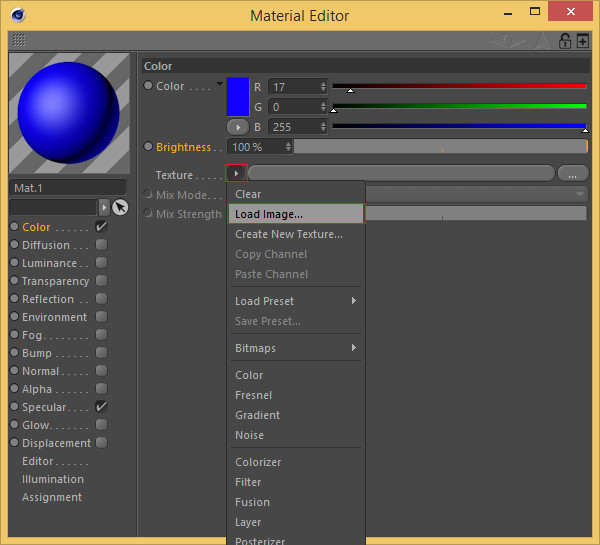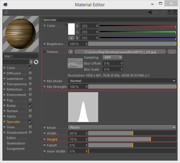 الـ Specular يكون مفعل تلقائيا يمكننا تغير لون اللمعان على الخامة لصبح هكذا