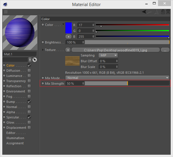 نعيد خامة الخشب مرة اخرة من الـ Color وننشط الـ Bump