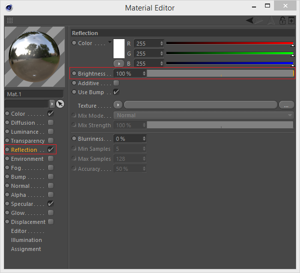 هذه النتيجة مع تفعيل الـ Reflection دون وضع Texture بها
